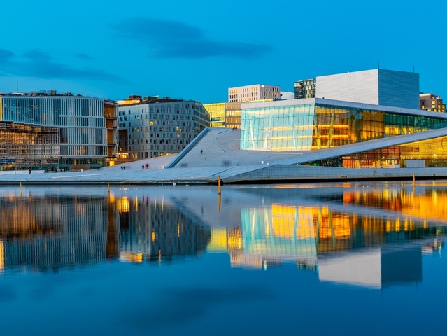 位於Bjørvika地區的海岸旁,鄰近中央車站,正對奧斯陸峽灣。其建築設計宛如一艘停泊在海上的船,由大理石與玻璃打造,線條簡潔現代,氣勢宏偉,是挪威規模最大的表演藝術場館,經常舉辦歌劇與文化活動。 這座歌劇院是全球首座可在屋頂行走的歌劇院,白色的屋頂由36,000塊義大利大理石與花崗岩鋪成,猶如從峽灣中升起的冰山或漂浮的巨大浮冰。建築還運用太陽能供電,展現環保理念。遊客可隨意坐臥其上,曬太陽、讀書,或漫步至頂端,將奧斯陸市區與峽灣美景盡收眼底,享受獨特的城市風光。