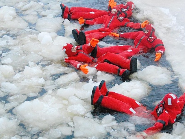 - 破冰船+龍蝦裝冰海漂浮